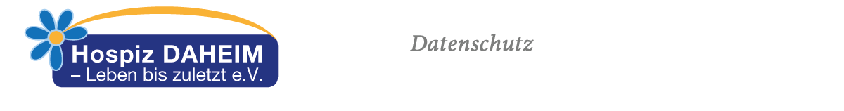 Die Website von "Hospiz DAHEIM – Leben bis zuletzt e.V." möchte online über die Ziele, Angebote und Serviceleistungen des Vereins aufmerksam machen. Sie verzichtet bewusst auf Formulare, Cookies, Trackinglinks, Plugins und Links zu Social-Media. Sofern innerhalb des Internetangebotes die Möglichkeit zur Eingabe persönlicher oder geschäftlicher Daten (Emailadressen, Namen, Anschriften) besteht, so erfolgt die Preisgabe dieser Daten seitens des Nutzers auf ausdrücklich freiwilliger Basis. Informationen, die Sie an die Website gesendet haben oder die Ihnen von der Website übermittelt werden, sind verschlüsselt, was anderen den Zugang zu diesen Informationen erschwert (https, SSL).